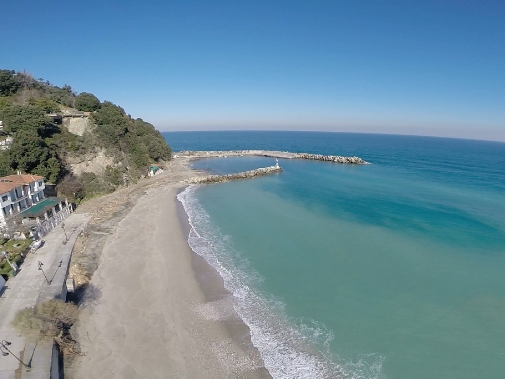 Μια από τις μεγαλύτερες αμμώδεις παραλίες του Ανατολικού Πηλίου, με φόντο το καταπράσινο βουνό, ιδανική για στιγμές χαλάρωσης και ηρεμίας.