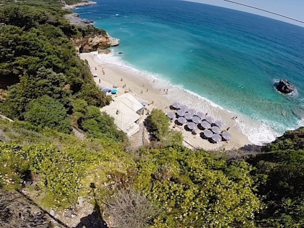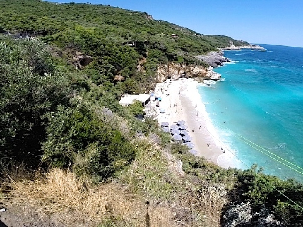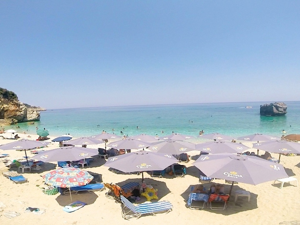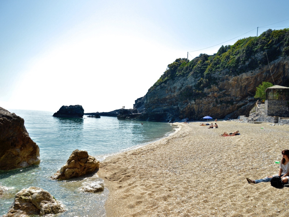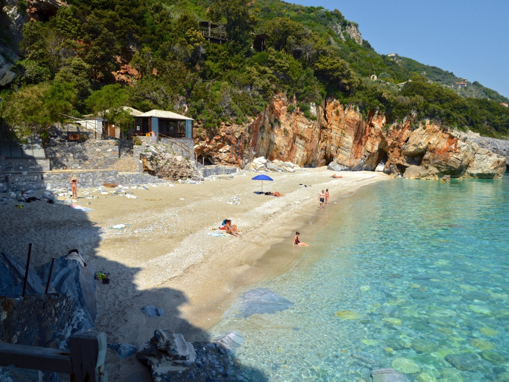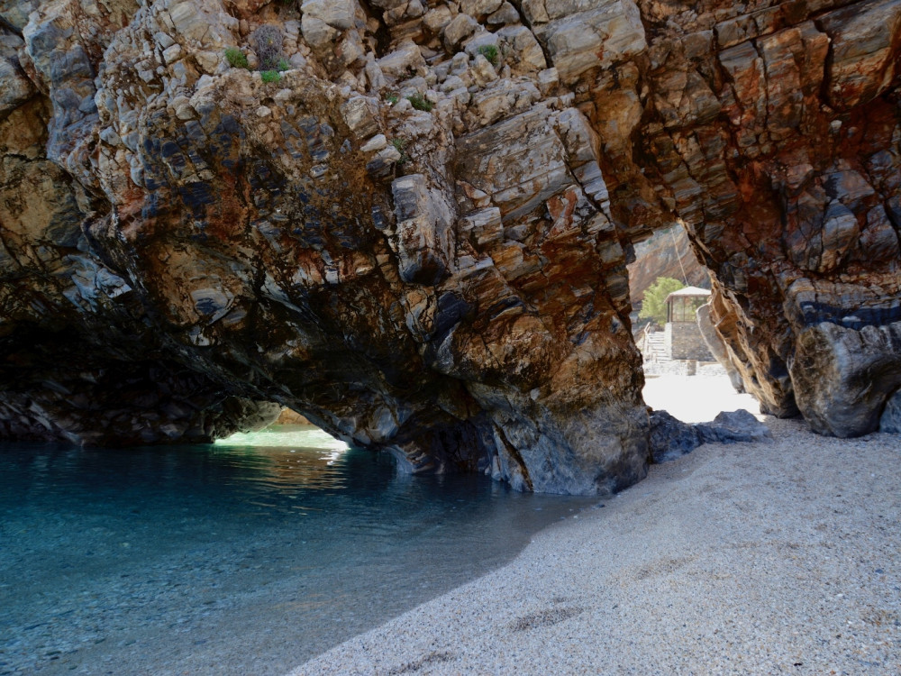 Εδώ πελώρια βράχια απλώνονται ολόγυρά σας ενώ η ματιά σας χάνεται στην απεραντοσύνη του Αιγαίου. Ένα πέρασμα ανάμεσα στα βράχια, θαυμαστό έργο της φύσης, συνδέει τη μεγαλύτερη αμμουδιά με μια μικρότερη.